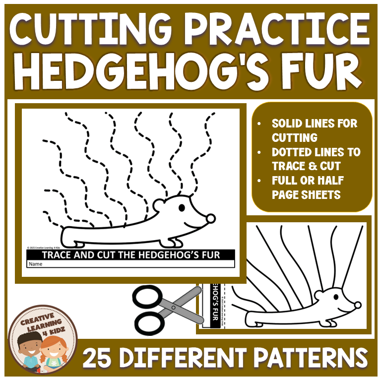 These fun and engaging worksheets feature a lovable hedgehog with 25 different spiny hairstyles for kids to trace and cut. Whether it’s straight, curly, zigzag, or wild, each page gives students a new way to practice fine motor skills and cutting precision.