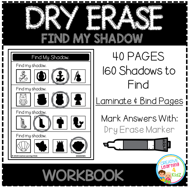 Find My Shadow? Dry Erase Workbook – Shadow Matching Activity for Kids