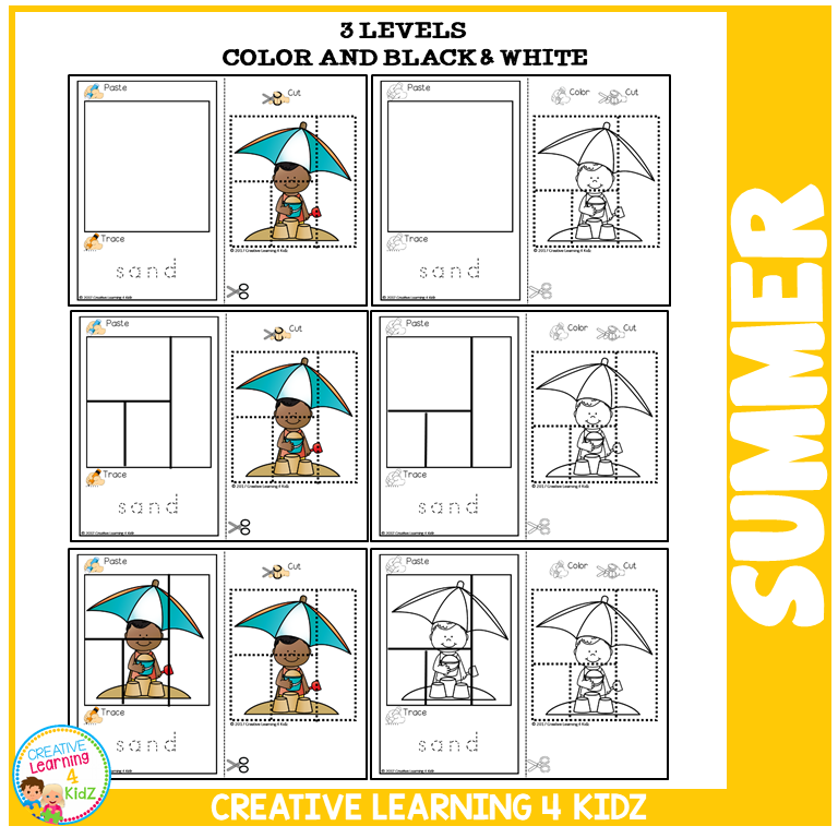 This sunny set of cut-and-paste summer puzzles is perfect for building fine motor skills while keeping young learners engaged. With 208 total puzzles and 6 differentiated versions, your students will enjoy cutting, pasting, coloring, and tracing all season long!