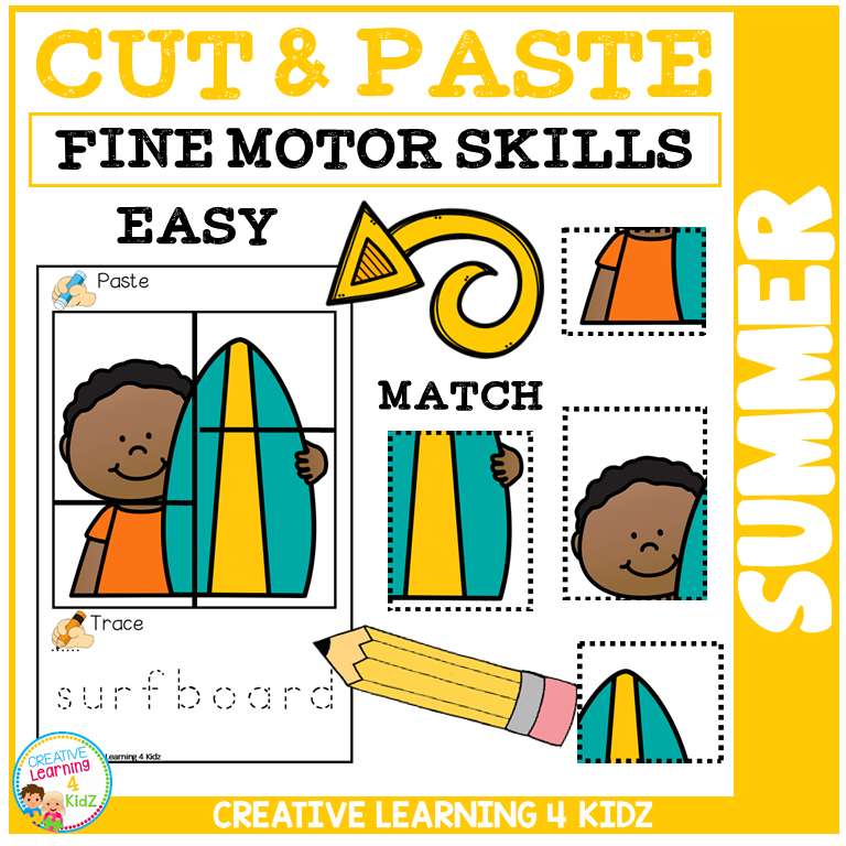 Summer Cut & Paste Worksheets – Fine Motor Puzzle Activities for Preschool